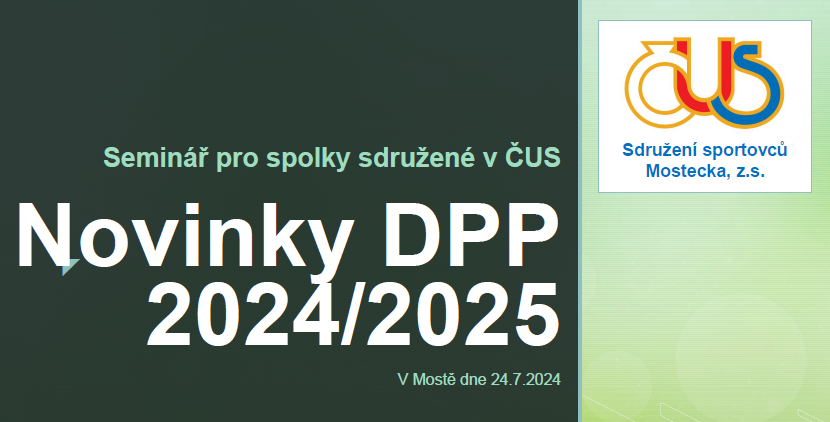 jak jsme Vás informovali (15. 7. 2024), tak SPORTMOST (OS/SCS ČUS Most) připravil pro své členy Seminář k problematice DPP. Všem, kteří se na seminář přihlásili, jsme v předstihu zaslali bližší informace k účasti .
