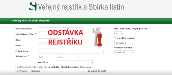Odstávka veřejného rejstříku 13.11.2025 16:21 Ve dnech od 14.11.2025 do 17.11.2025 se uskuteční plánováná odstávka Veřejného rejstříku. Během odstávky nebude systém plně dostupný. Zdroj: https://or.justice.cz/ias/ui/rejstrik